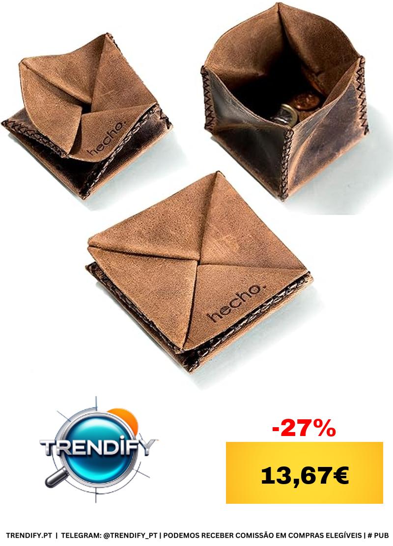 🔹 Hecho. Carteira de couro genuíno – artesanal, comércio justo (carteira pequena de pele para homem, mulher, menino e menina), Madeira escura